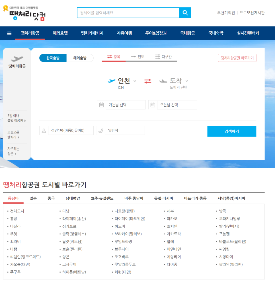 - 땡처리닷컴: 땡처리 항공권 전문 사이트, 실시간 업데이트로 저렴한 항공권을 빠르게 검색 및 예약 가능.