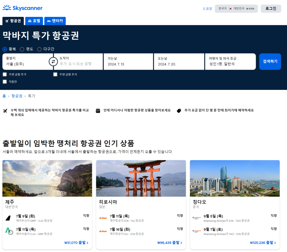 초저가 땡처리 항공권 예약 방법 및 추천 사이트